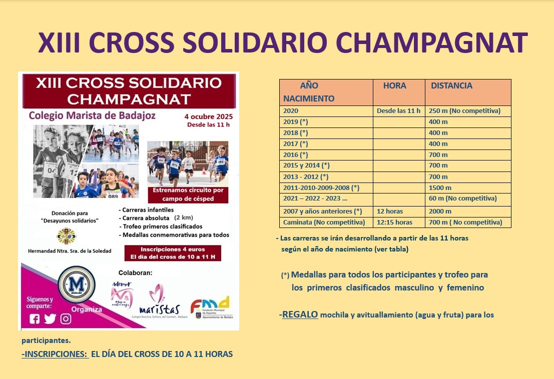 XIII Cross Solidario Champagnat 28 de septiembre de 2025 por Floren Encinas Comparte esta publicación... FacebookTwitter